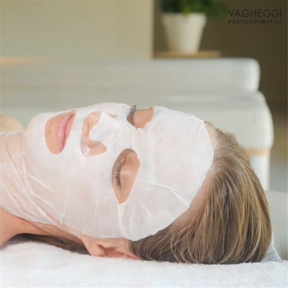 Is an indulgent, Italian-crafted fabric mask that brings the power of advanced skincare directly to your clients’ faces. Soaked in a rich emulsion of Macadamia oil, Acmella extract, and a “botox-like” peptide, this luxurious mask is the ultimate solution for nourishing, anti-aging, and brightening treatments.