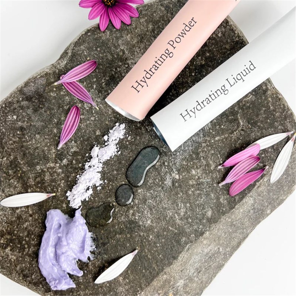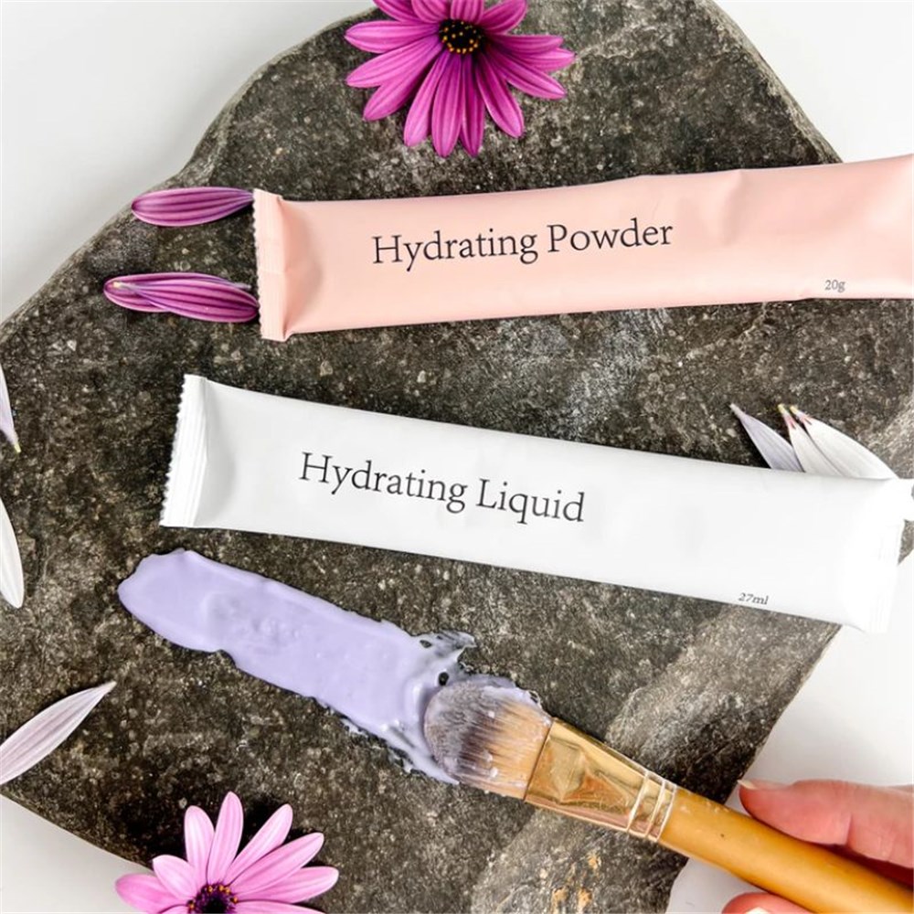 - After cleansing, combine 1 sachet of Hydrating Powder (pink) and 1 sachet of Hydrating Liquid (white) in a bowl.