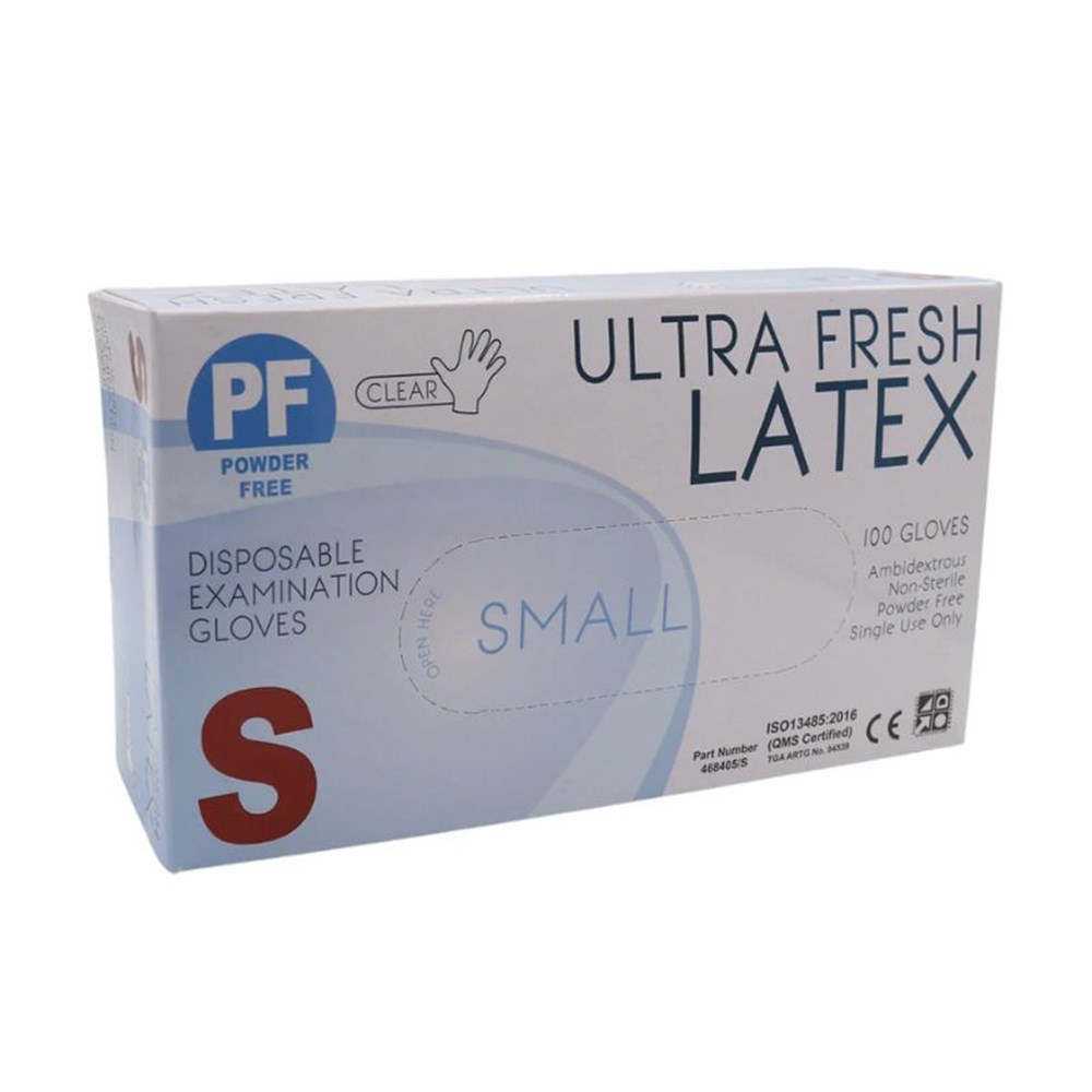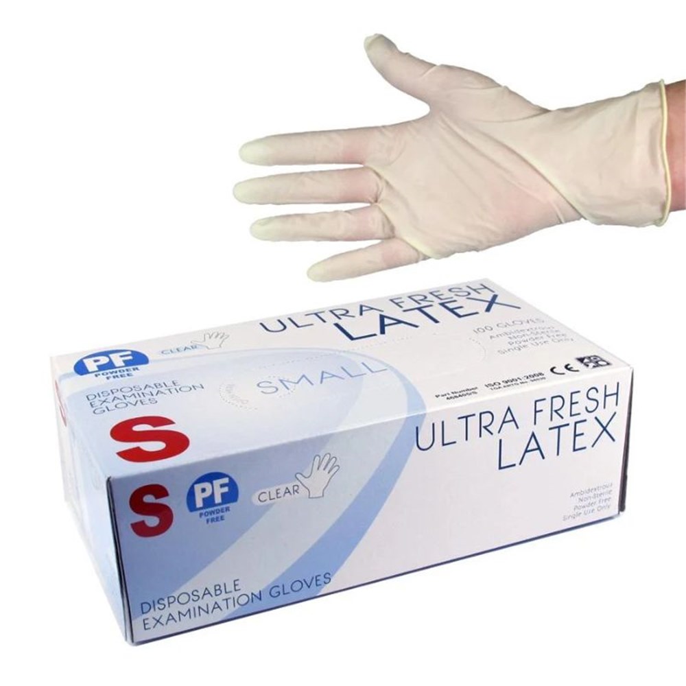 LATEX GLOVES – SMALL, POWDER FREE, CLEAR - BULK BUY X10 BOXES