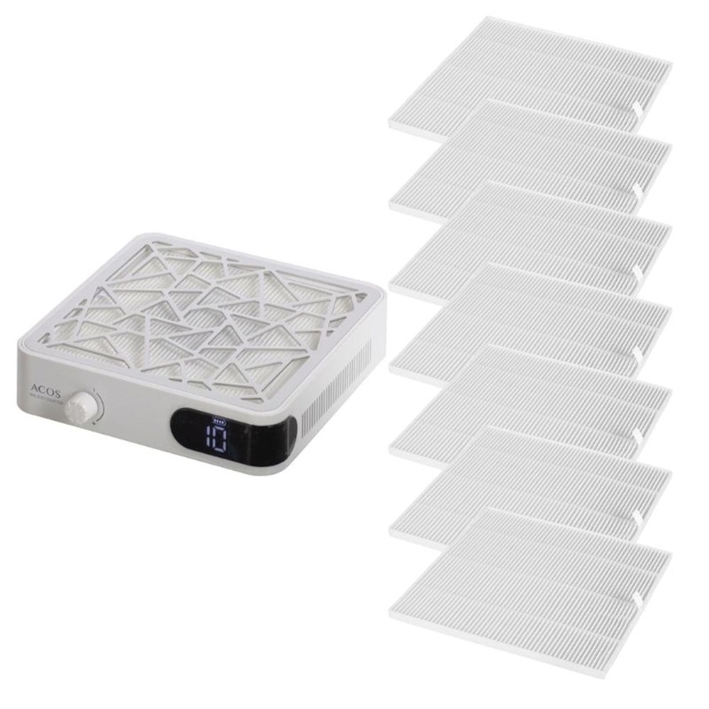 This package includes the main extraction unit plus 6 replacement filters, giving you long-lasting performance and superior air quality maintenance. The high-efficiency filtration system captures fine nail dust and particles produced during filing, buffing, and acrylic or gel applications, reducing airborne residue and promoting salon cleanliness.