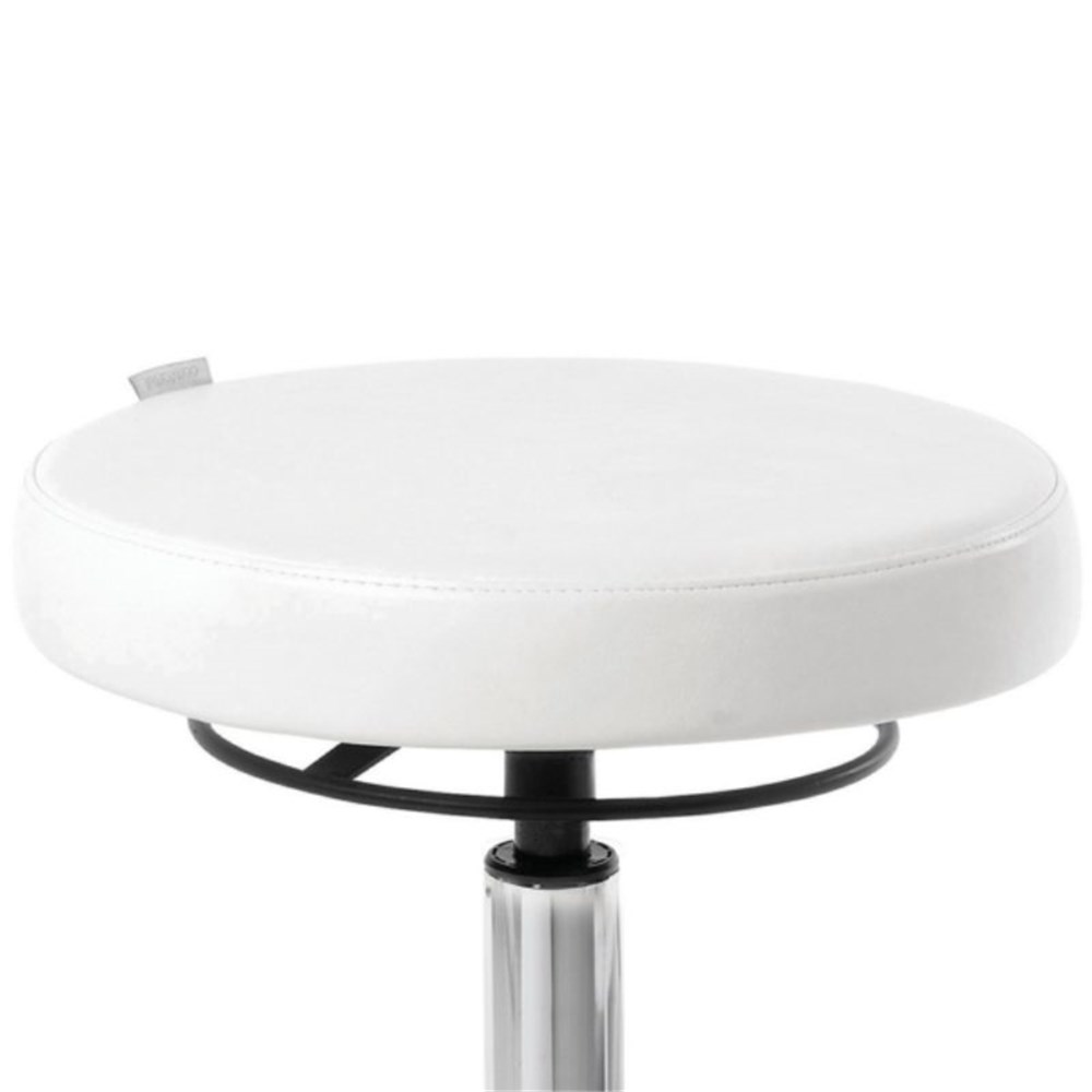 The round, padded luxury cushion offers superior comfort and durability, while the gas lift mechanism allows smooth, easy height adjustment with a convenient round lever accessible from any side. Whether you’re cutting, colouring, or consulting, this stool moves with you.